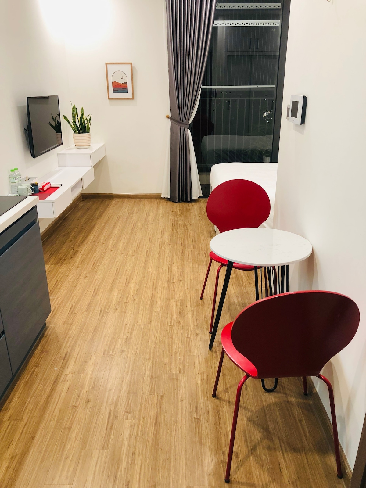 Чудова квартира в сучасному стилі. Квартира розташована на вулиці VINHOMES GREEN BAY Me Tri, Nam Tu Liem, Hanoi - дуже близько до національного адміністративного центру, Grand Plaza - посольства Кореи, стадіону My Dinh, вулиці Pham Hung. Площа студії площею 30 кв. м, 1 ванна кімната, а у вітальні є гарний обідній стіл, кухня має поруч холодильник, індукційну, шафу, мікрохвильову піч. Крім того, є басейни, тренажерні зали, ігрові майданчики для дітей. Тому ви будете почуватися так зручно в повсякденному житті.