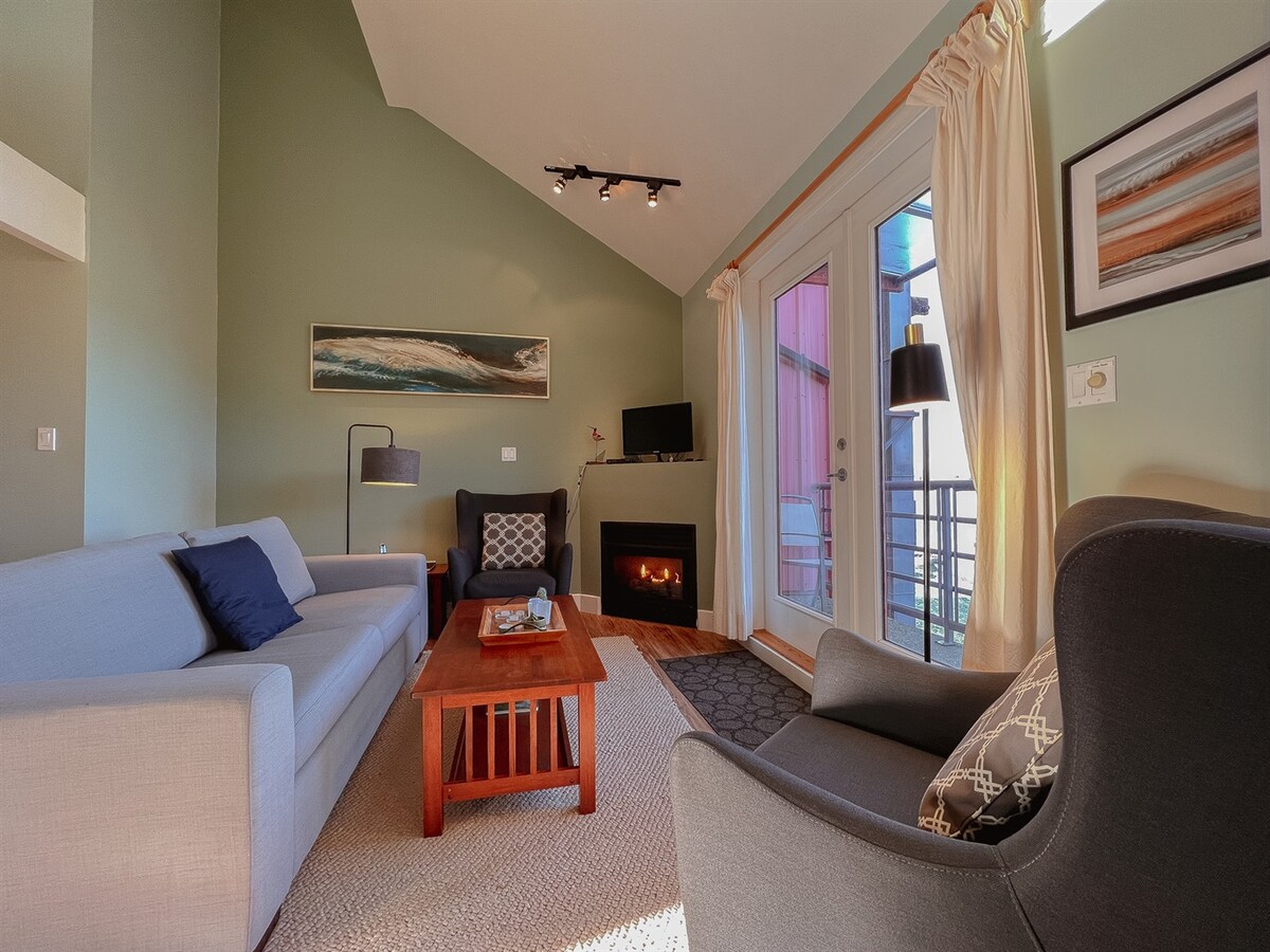Кондомініуми для відпочинку Фреда Тіббса 100% юридична, ліцензована та місцева власність Приїжджайте до нашої теплої та привабливої квартири-студії, розташованої в центрі міста Тофіно, прямо на набережній! Спостерігайте за жвавою гаванню та видом на гори зі стільців у патіо. Люкс знаходиться в декількох хвилинах ходьби від всього необхідного: наших дивовижних ресторанів, невеликих магазинів, парків і стежок поблизу та пляжу Тонкін. Ми сусіди в чудовій кав 'ярні, яку ви не хочете пропустити
