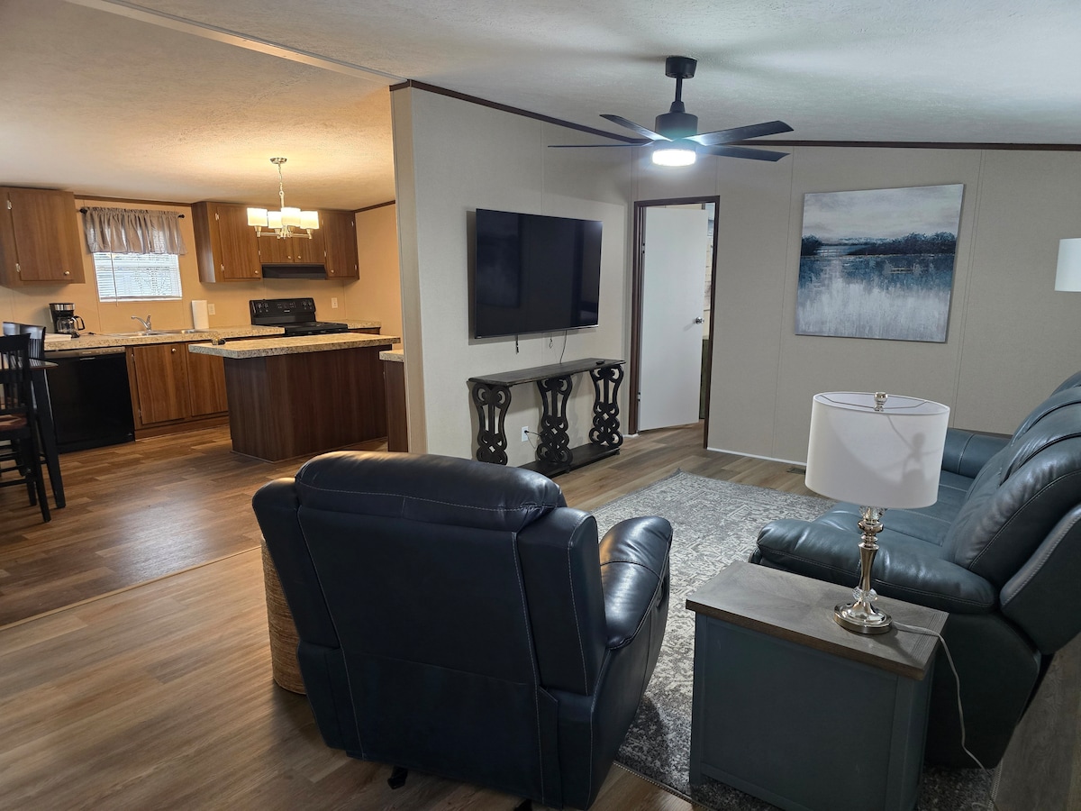 НОВИЙ ПРИЧАЛ/ПЕРЕДНІЙ ГАНОК!! Ласкаво просимо до Retro Retreat! Будинок площею 1700 кв. футів із 3 спальнями, 2 двоспальними ліжками, 1 двоспальним ліжком, 1 двоспальним ліжком і одним надувним матрацом. Вміщує до 10 і 8 осіб на більш комфортному рівні. Оренда також включає: - Велика суміжна тераса. - 2 байдарки -2 SUP - Плавні плоти - Жіночі куртки - Wi-Fi; - Повна кухня. - Газовий гриль. - Дров 'яний камін у приміщенні - 2 вогнища на вулиці; - Міні-холодильник / бар - Настільні ігри - Приватний причал.