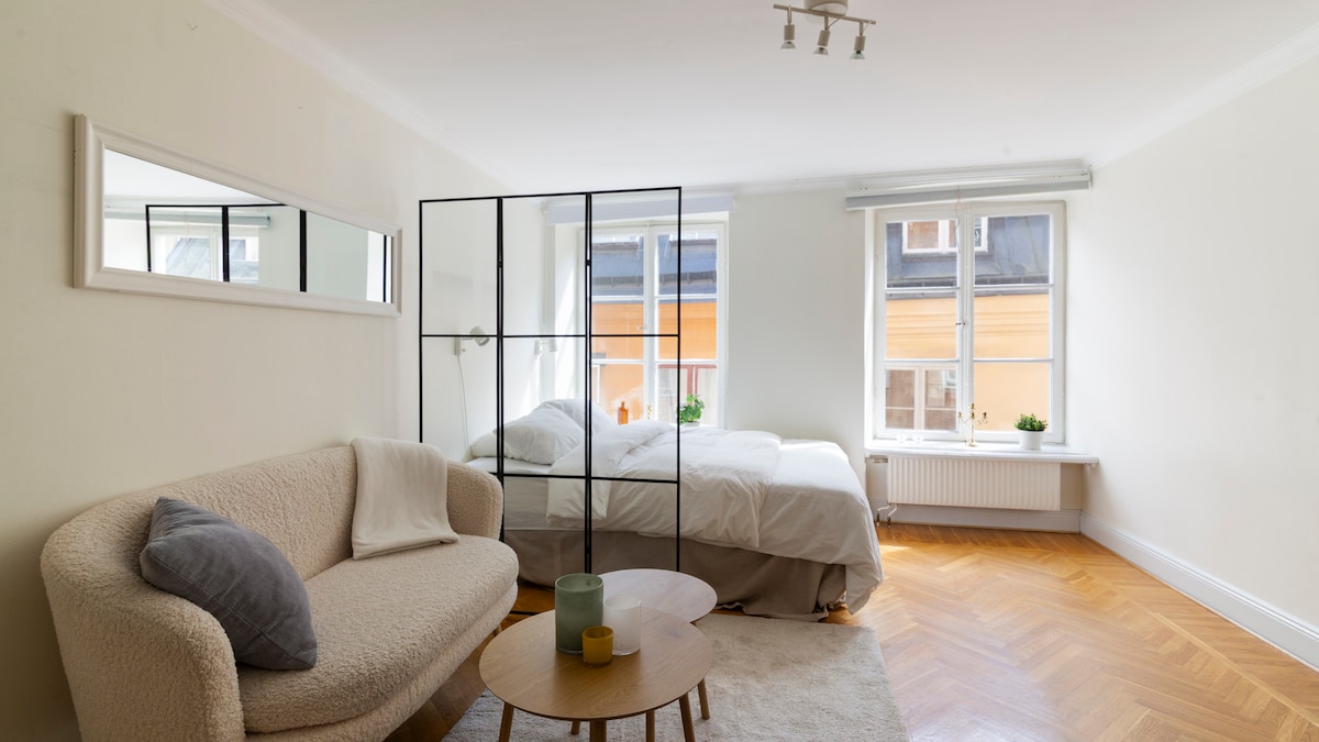 Ласкаво просимо до чарівної будівлі Старого міста! Ця нещодавно відремонтована квартира пропонує спокійний відпочинок прямо в центрі Старого міста. Він зручно розташований поблизу відомих ресторанів, таких як Gyllene Freden і Pastis, і пропонує легкий доступ до жвавого району Сьодермальм. Насолоджуйтеся такими зручностями, як безкоштовний Wi-Fi, зручне двоспальне ліжко та повністю обладнана кухня, що забезпечує спокійне та зручне перебування.