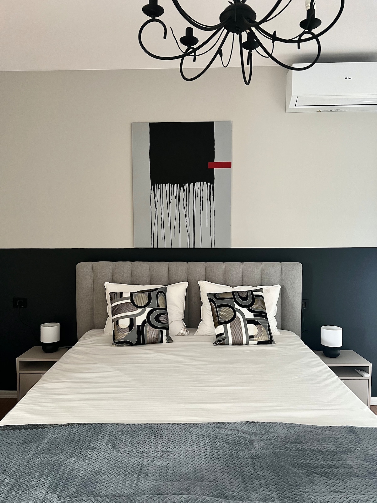 Mallorca One – це спокійна, наповнена світлом квартира з м’якими блакитними тонами, теплим деревом і плавними вигинами. Це помешкання, створене для комфорту та стилю, має затишну вітальню, кухню в пастельних тонах і спокійну спальню з м’яким освітленням. Ідеально підходить для пар або індивідуального перебування, це тихий відпочинок всього в кількох хвилинах від міської суєти. Ідеальне розташування в Приштині в 3 хвилинах ходьби до центру, і все, що вам потрібно, знаходиться поруч