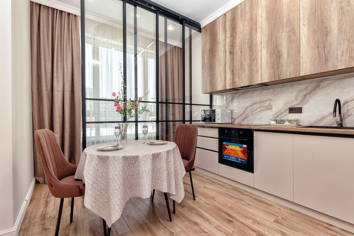 Затишні квартири в житловому комплексі Expo Residence на лівому березі Астани. Поруч розташовані торговий центр MEGA Silkway, EXPO, Астанинський університет інформаційних технологій, Hilton, Назарбаєв Університет та ключові медичні центри. У квартирі: двоспальне ліжко, м’який диван, окрема кухня та ванна кімната. Серед іншого, зручно дістатися до міжнародного аеропорту. Магазини, кафе та кав’ярні розташовані неподалік. Час, проведений тут, подарує вам особливе естетичне задоволення.