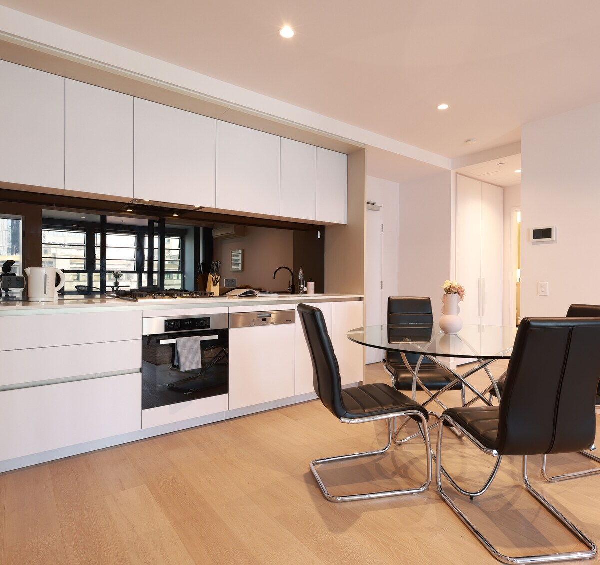 Знайдіть центральний район Мельбурна, недалеко від ринку Вікторії та центрального залізничного вокзалу Мельбурна. Висота розкоші, в центрі КБР. Це абсолютно нова квартира, яка щойно оселилася. Майте абсолютно нові високоякісні меблі, духовку, посудомийну машину, пральні машини тощо. 75-дюймовий смарт-телевізор і дуже комфортне середовище у вітальні. Оновлений швидкісний ІНТЕРНЕТ Telstra!! 2 спальні та 2 ванні кімнати з двома двоспальними ліжками розміру Queen size та диваном-ліжком, підходить для родини та друзів. Усе кухонне обладнання підготовлено.