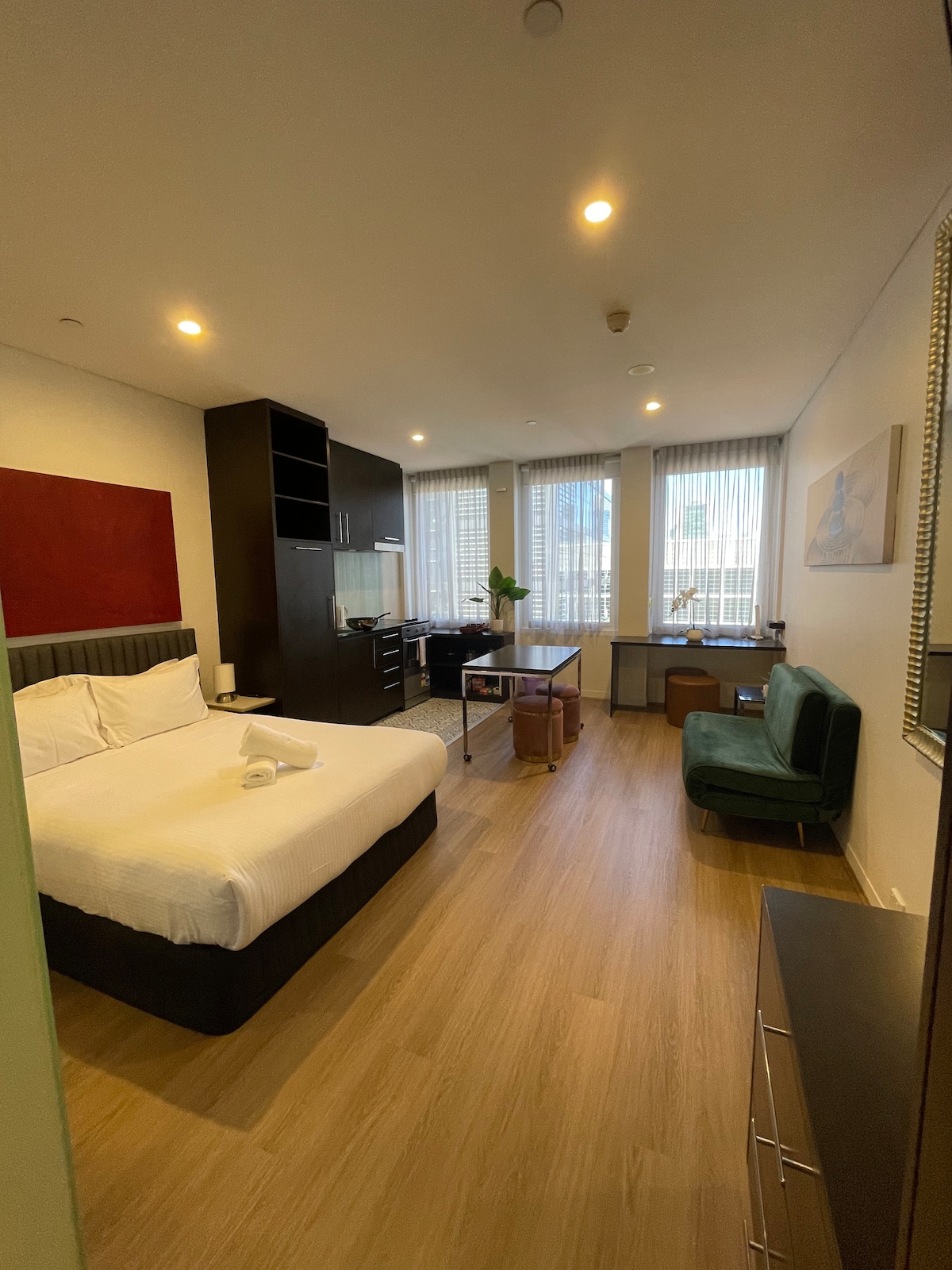 Стильна велика однокімнатна квартира на 16F, розташована в центрі КБР, тепло оформлена та охайна обстановка, гарне та затишне місце для розміщення, дуже близько до Центрального вокзалу Мельбурна, ринку Вікторія, супермаркету, трамваїв, ресторанів, кав 'ярень тощо. Тут є широкий вибір ресторанів і готелів високого класу. Торговий бранч і розваги пропонуються. Безкоштовний високошвидкісний Wi-Fi. Телевізор Netflix. Повністю використовуйте розкішні зручності, такі як басейни. Чудовий сервіс, як удома.