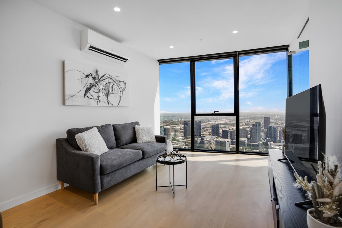 Welcome to Sky High International at Queens Place, where you’ll stay in one of Melbourne’s highest service apartments—perched on the 70th floor and above. Offering breathtaking 270° panoramic views of the city skyline, this luxurious 3-bedroom apartment sets a new benchmark for high-rise living in the heart of Melbourne CBD. Located within the Free Tram Zone, and with a Woolworths supermarket right downstairs, you’re just steps away from Queen Victoria Market, Melbourne Central, restaurants