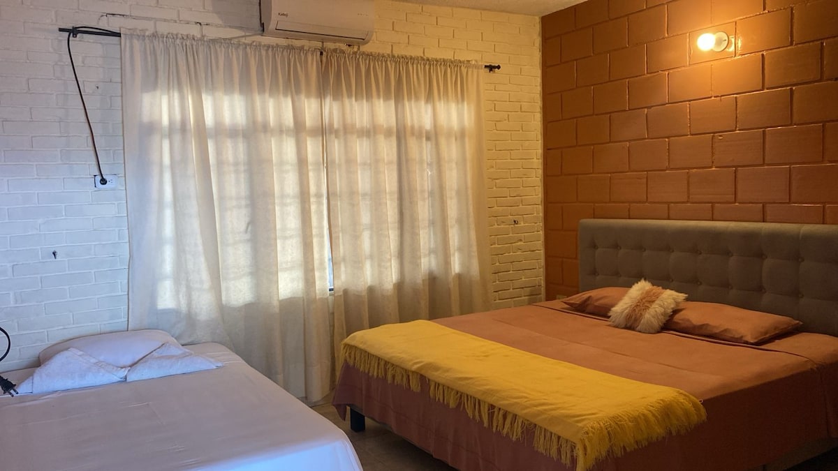 Habitaciones cómodas y amplias las cuales cuentan con aire acondicionado además de baño privado, el servicio se encuentra acompañado de desayuno incluido, acceso a piscina tipo jacuzzi y parqueadero privado. No pierdas la oportunidad de tener una experiencia única con un servicio de calidad. ✨🌴