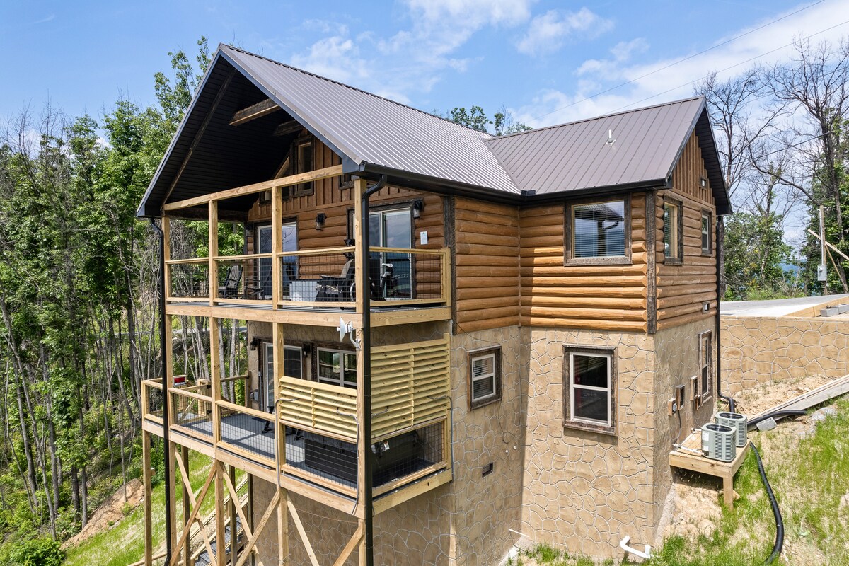 Приголомшливий новий зруб у ірландському стилі Nat'l Park із прекрасним видом на долину. 2 спальні, 2 ванні кімнати, 2 кам 'яні каміни. Біля вершини гори. 6 миль до Піджен-Фордж, 13 миль до Гатлінбурга. Легко їхати по чудовій дорозі. Задні дороги уникають руху на паркувальній дорозі. 2 ліжка «king-size» та 1 спальне місце «queen-size». 2 відкриті тераси з гідромасажною ванною на терасі та джакузі в приміщенні. Велосипед та обладнання для тренувань. Кінотеатр із 75-дюймовим телевізором і об 'ємним звуком, надшвидкий Wi-Fi. Кухня шеф-кухаря, газова плита. Гриль Weber. Пральня. Активний/Ret. Military/LE 10% знижка.