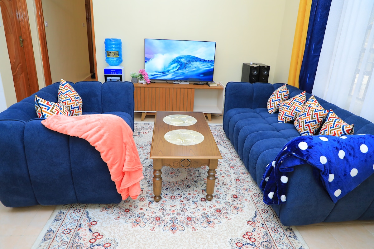 Сучасна студія в центральному діловому районі Накуру, ідеально підходить для гостей, які відвідують конференції в Sarova Woodlands або національний парк Озеро Накуру. Насолоджуйтеся яскравим, затишним помешканням із швидким Wi-Fi, смарт-телевізором, повністю обладнаною міні-кухнею, плюшевою постільною білизною, гарячим душем та безкоштовним безпечним паркінгом. Легко дістатися до торгових центрів, ресторанів і головних доріг; ідеально підходить як для роботи, так і для відпочинку, зі спокійною атмосферою, щоб розслабитися після напруженого дня.