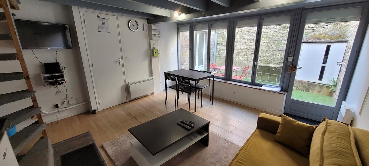 Чарівний будинок на 6 осіб, тихий з прекрасним видом на замок, прямо в центрі міста, всі магазини та ресторани пішки (Intermarché boulangeries тощо) Зручний, яскравий, теплий . Легка та безкоштовна парковка поблизу, включаючи великі транспортні засоби (без приватної парковки). 2 спальні з двоспальними ліжками 160x200 та 1 спальня, 2 односпальні ліжка 90x190. Постільна білизна та постільна білизна для ванної кімнати нада Дві ванні кімнати з трьома ванними кімнатами. Wi-Fi і телевізор із підключенням Freebox