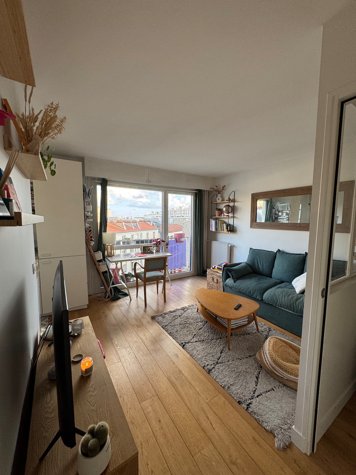 Відкрийте для себе прихисток світла всього в декількох кроках від міфічного Пер-Лашез. З цієї квартири, переробленої архітектором, відкривається захоплюючий вид на паризькі дахи. Щоранку дивуйтеся сходу сонця, заливаючи квартиру м 'яким світлом. Ідеально підходить для сім 'ї з 2 дітьми або 4 дорослими. У вітальні є двоспальний диван-ліжко. Сучасна та тепла кухня повністю обладнана. Великий стіл, який може вмістити до 8 гостей.