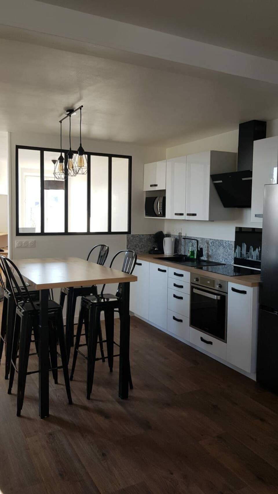 Чарівне помешкання розташоване в самому центрі, недалеко від «Laval Historique» та недалеко від барів/ресторанів, супермаркету (Place de la Trémoille). Ви можете зробити все, що завгодно. У квартирі є велика спальня з робочим місцем (офісом), велика гардеробна та ванна кімната. Обладнана кухня, газова варильна поверхня, духовка, мікрохвильова піч, холодильник, пральна машина. У вашому розпорядженні еспресо-машина (капсули включено), тостер, чайник. У вітальні є диван-ліжко.