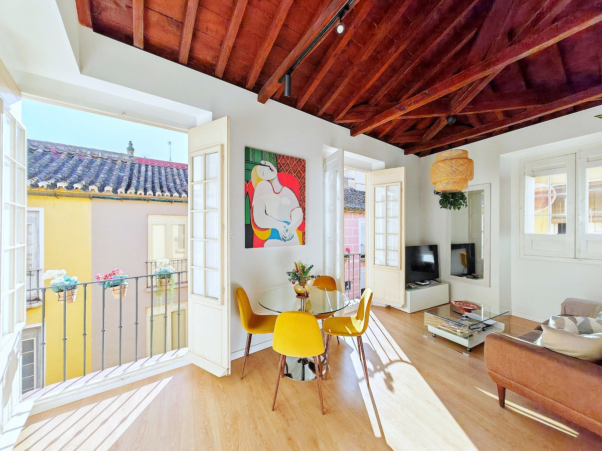 Wake up above the historic skyline and enjoy a unique rooftop experience rarely found in central Málaga. This bright and elegant penthouse combines authentic character with modern comfort. The spacious terrace is perfect for relaxing, sunbathing, or enjoying sunset drinks with panoramic city & Cathedral views. Everything you want in Centro Historico within 5 minutes walking, making it easy to explore the best of Málaga while staying in a peaceful, high-end retreat. •Cathedral views •Location