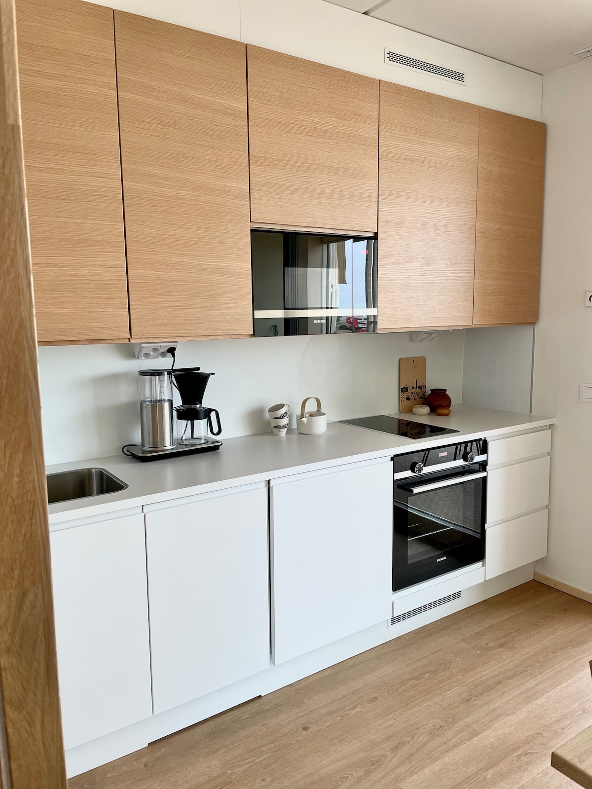 Tyylikäs ja hyvin varusteltu siisti parvekkeellinen yksiö (n. 30 m2) luhtitalon toisessa kerroksessa: Keittiö-olohuone, alkovi, kylpyhuone/wc. Alkovissa parivuode ja olohuoneessa uusi, tilava vuodesohva kahdelle. Erillinen taloyhtiön saunarakennus. Valmistumisvuosi 2017. Varustelu: Tv , jääkaappi, astianpesukone, keraaminenliesi/uuni, kahvinkeitin, vedenkeitin, leivänpaahdin, mikroaaltouuni, pyykinpesukone, pölynimuri, astiasto ja vuodevaatteet 4:lle (täkit ja tyynyt), ei liinavaatteita.