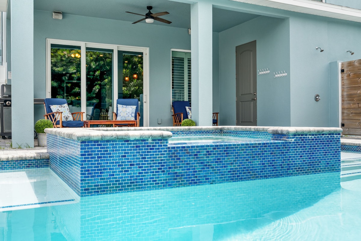 Ласкаво просимо до «Sea Haven», частини колекції помешкань «The Florida Havens». Цей будинок пропонує комфорт і зручність у рівній мірі: чотири спальні з двоспальними ліжками, приватний басейн із підігрівом і спа-центр, а також дві хвилини пішки до пляжу. Спостерігайте за сходом сонця, плавайте та відпочивайте біля басейну, а вечорами насолоджуйтеся вишуканою кухнею неподалік. Тематичні парки Орландо розташовані всього за годину їзди, тож Sea Haven – ідеальне поєднання відпочинку та сімейних розваг у Флориді.