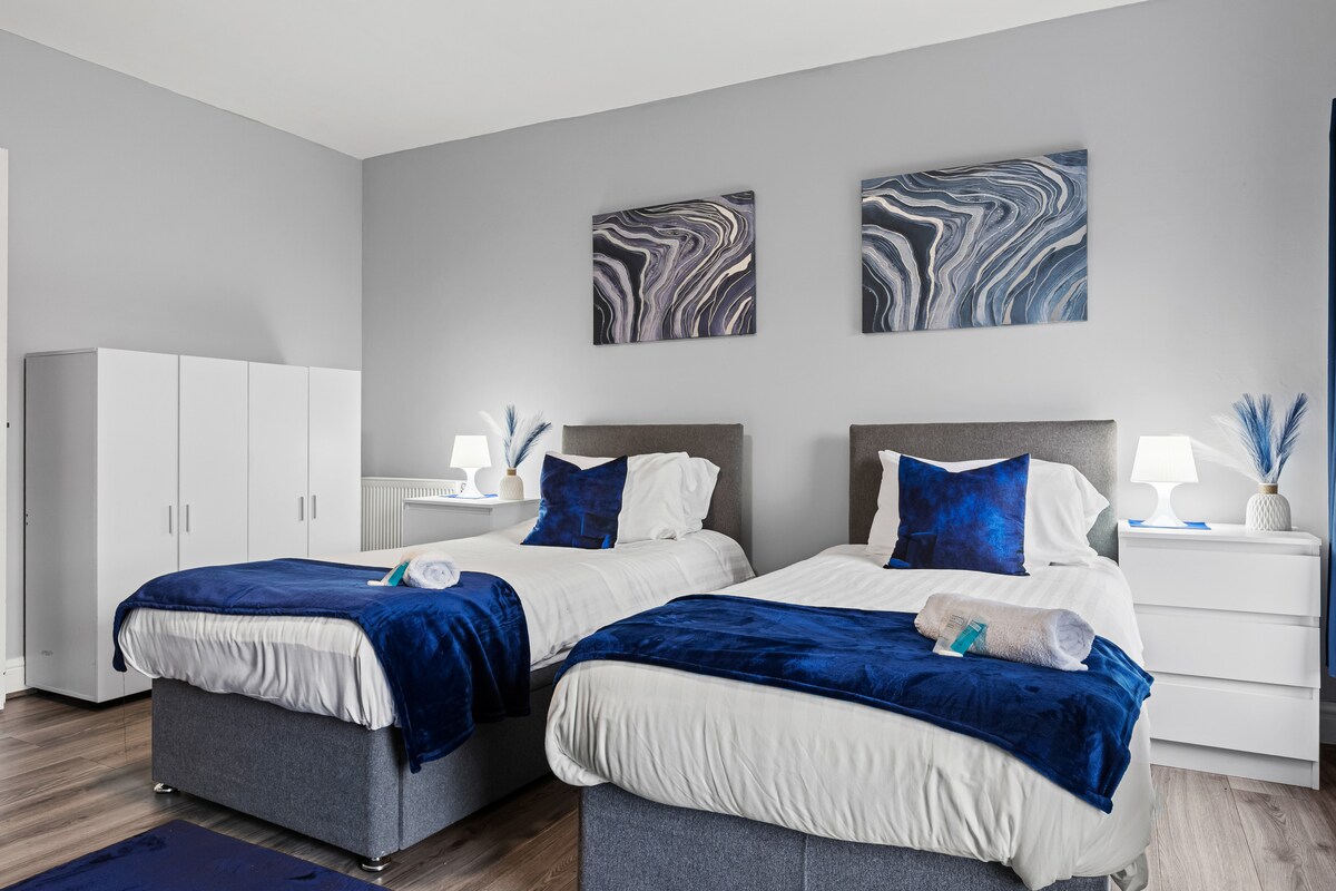 ❌ СТРОГО забороняється проводити ВЕЧІРКИ - У помешканні є камери відеоспостереження та пристрої виявлення гучності - Збори будуть завершені швидко, і всі вони будуть викинуті без ПОВЕРНЕННЯ КОШТІВ. ❌ МИ НЕ ЗДАЄМО ПОМЕШКАННЯ В ОРЕНДУ ГОСТЯМ, ЯКІ ЖИВУТЬ У ЛІВЕРПУЛІ. 👥 Ціле помешкання у вашому розпорядженні 🛌🏻 2 спальні, 4 ліжка, 6 спальних місць 🛁 1.5 Ванні кімнати 📺 55-дюймовий смарт-телевізор (Netflix і Prime) 🍳 Повністю обладнана кухня 📡 Надшвидкий оптоволоконний WI-FI Надаються 🧺 свіжі рушники та постільна білизна 🔐 Самостійне прибуття/виїзд із ключем у сейфі