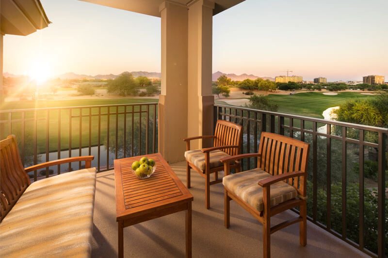 Tee off at a desert oasis with golf, pools & private patios – Scottsdale, AZ Start your day with a round of golf on the lush 18-hole course, unwind by the heated pool, enjoy a meal at The Grove Grille, and relax in your spacious suite with a private patio under the Arizona sky.