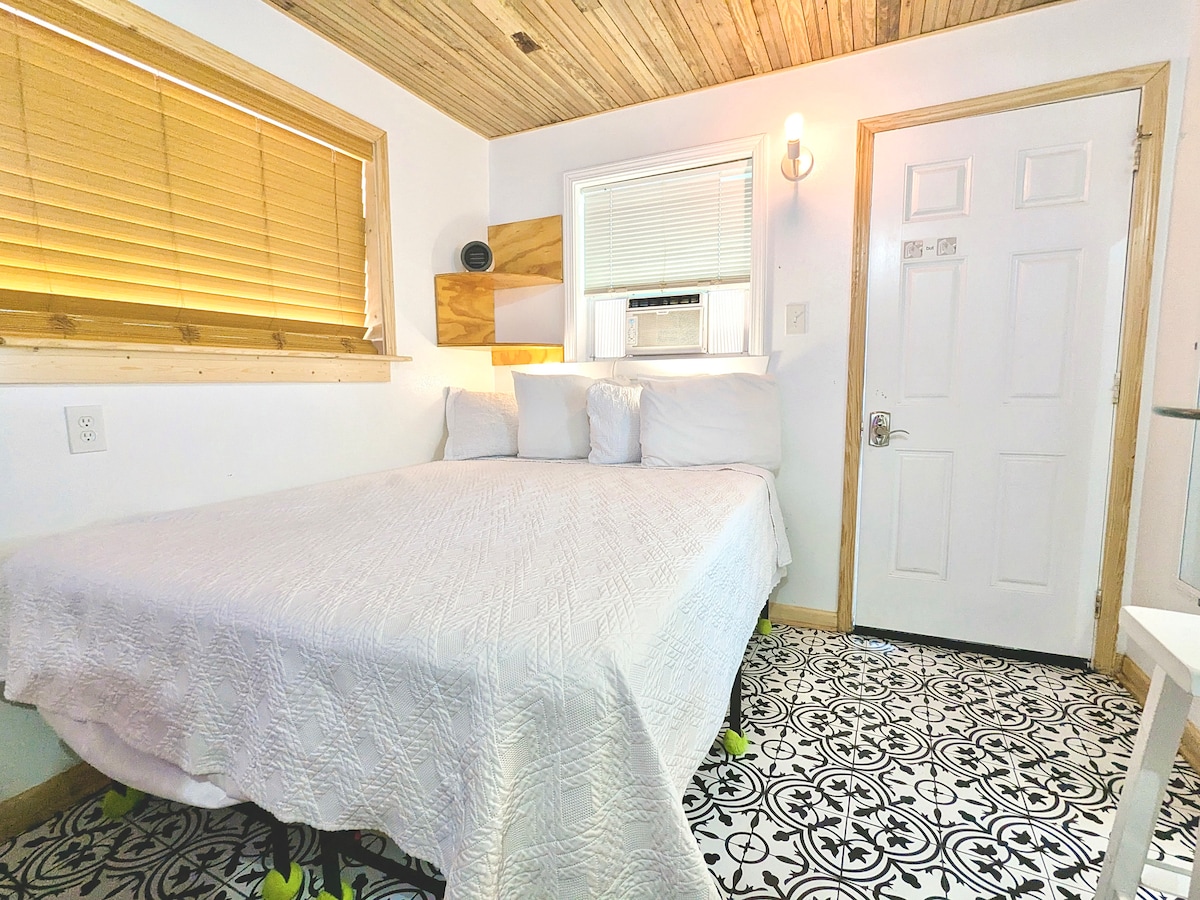 Кімната Клементини - чудовий прихисток у Мід-Сіті на острові Сент-Джон. Це просто спальня/ванна з душем з плиткою, пральною/сушильною машиною та ліжком king-size. Двері знаходяться поруч із альтанкою для відпочинку на відкритому повітрі, а робочий стіл можна облаштувати для двох гостей, щоб пообідати всередині. Є великий телевізор Roku для потокових шоу, міні-холодильник, мікрохвильова піч, електричний чайник та воронка для приготування ранкової кави або чаю, а також посуд і столові прибори для розігріву перекусу. Крім того, його можна поєднати з нашим люксом Sweet Suite для сімейного бронювання з 2 ліжками/2 ванними кімнатами