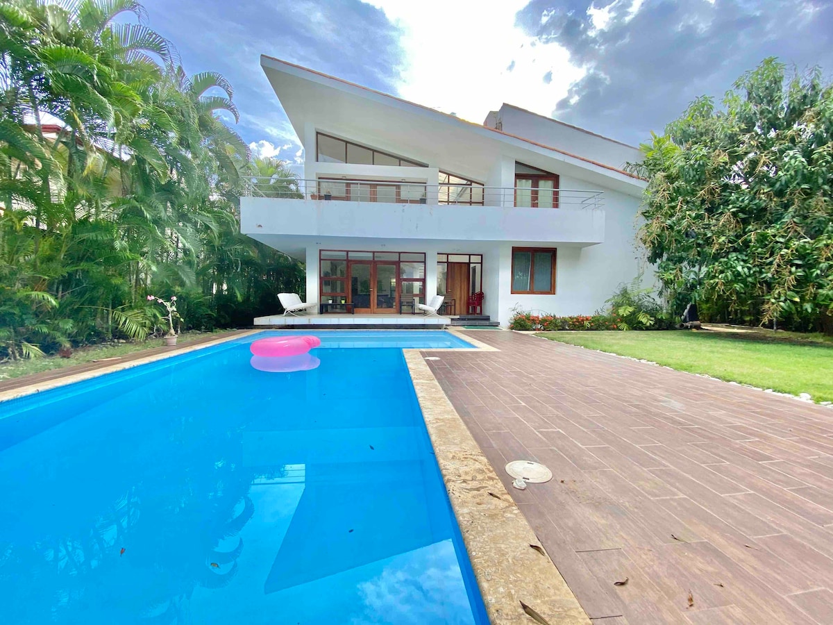 Lleva a toda la familia a este fantástico lugar a solo 5 minutos de la playa(club de playa privado). Con bastante espacio para disfrutar, en el prestigioso complejo Guavaberry golf and resort. Para 18 personas -5 Habitaciones grandes todas con aire acondicionado, smart tv, abanicos bluetooth. -Habitación de servicio con su baño -5 Baños. -Sala star -Gazebo amplio -Piscina -Jacuzzy -Cancha de baloncesto -Mesa de Billar -Barbecue(BBQ) -Agua caliente permanente -Area de lavado con maquina de lavar
