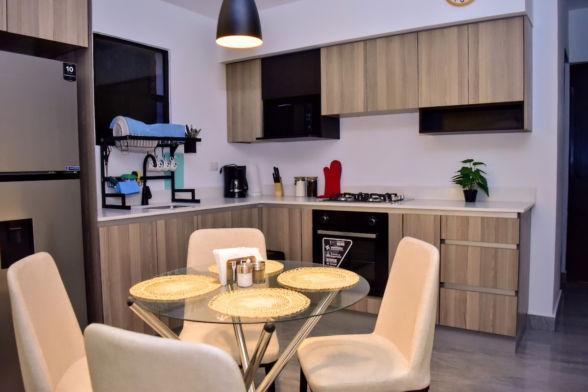 Насолоджуйтеся стильними враженнями в цьому помешканні, розташованому в центрі міста. – закрита зона. - Автоматичні ворота - Парковка включена. - Магазини поблизу - Тихий і безпечний район. - Безпека біля воріт. До квартири належать: - Пральна машина-сушильна машина. - Кавоварка. - Кухня та духовка. - Мікроонда - Холодильник. - Кондиціонер (спальня) - Телевізор у спальні та вітальні. - Робоча зона. - Диван-ліжко у вітальні. – Безкоштовна кава.