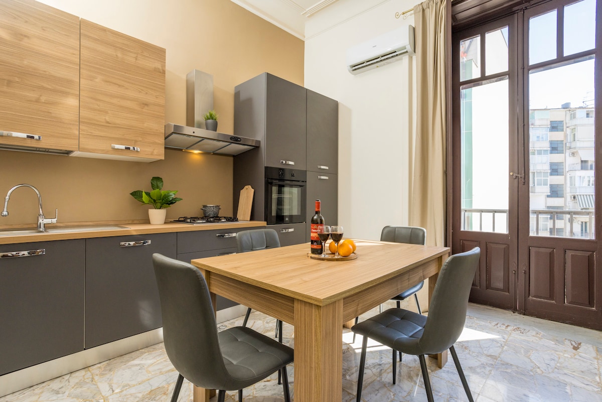Пориньте в історію та стиль у центрі Катанії. Ця елегантна квартира розташована в палаці XIX століття, прикрашеному оригінальними фресками на стелях. Це рідкісна можливість зупинитися в справді автентичному місці. Високі склепінчасті стелі та шість балконів з видом на історичний центр забезпечують природне освітлення та відчуття простору. Усього за 5 хвилин ходьби від Пьяцца Дуомо, знаменитого рибного ринку та Театру Белліні, ви зможете насолодитися автентичною Катанією. Доступна приватна стоянка