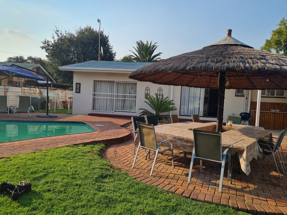 Charming self-catering cottage in Henley on Klip – a tranquil retreat for couples or business travellers. Spacious bedroom with queen bed, private shower, cozy lounge/kitchenette with sleeper couch (child 12+), TV, Wi-Fi, and essentials. Private patio with pool and garden access. Free parking, fan, and warm hospitality. Close to wedding venues, Bass Lake (3.5 km), Suikerbosrand Reserve (17 km), shops, and restaurants (1.5 km). No kids under 12. No Pets allowed.