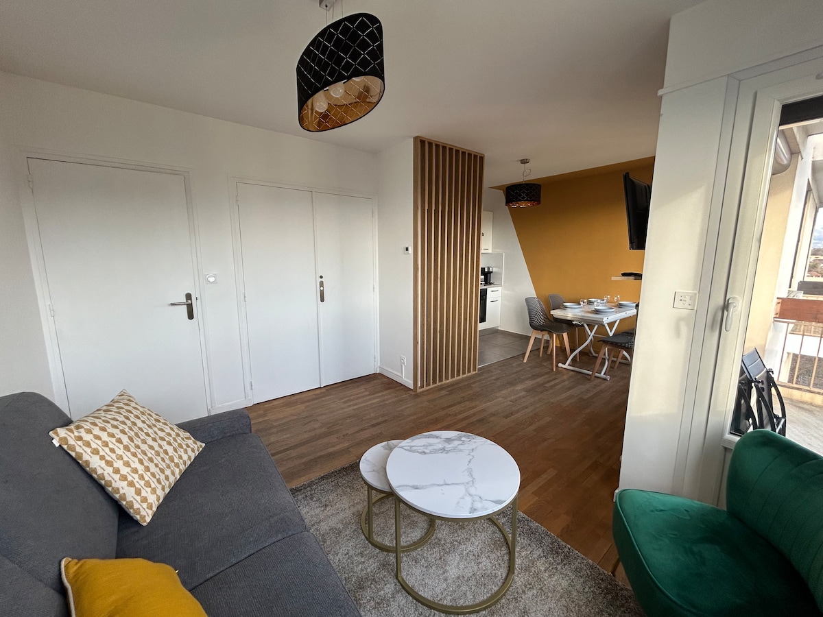 Красива квартира з панорамним видом на мережу Беледон, розташована менш ніж в 15 хвилинах їзди від Гренобля і менш ніж в 5 хвилинах від Inovallée або магазинів (гіпер U Biviers 12 хвилин ходьби). Розташоване в зеленій і тихому місці, це помешкання ідеально підходить для відпочинку або ділових поїздок (оптоволокно) Насолоджуйтеся перебуванням з усіма зручностями. Самостійне прибуття з сейфом для ключів розташоване на Мейлані в 9 хвилинах їзди на автомобілі від помешкання для пізнього або безкоштовного прибуття.