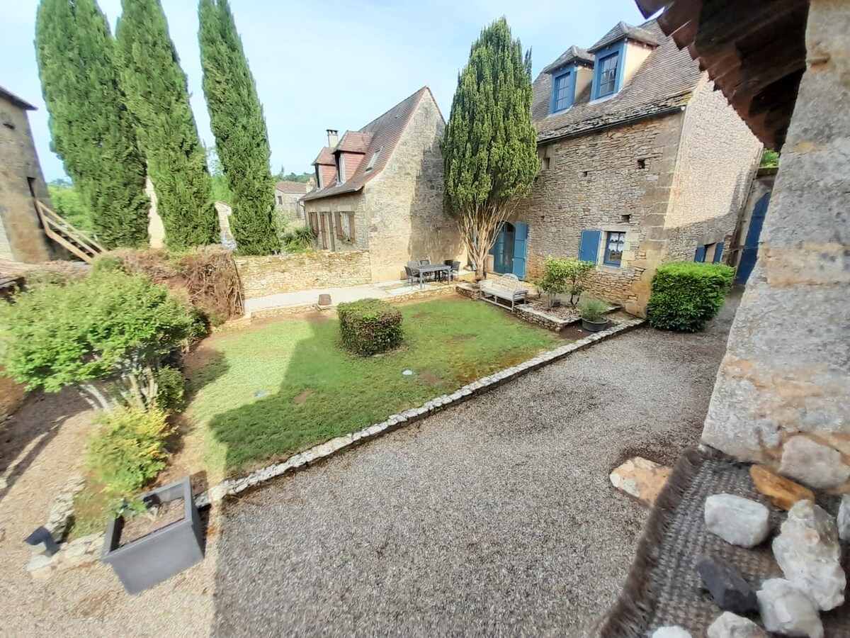 Maison indépendante sans vis-à-vis, en pierres située dans ancien hameau. Ce logement confortable vous séduira par sa décoration soignée ,son SPA privatif sera apprécié aprés de longues visites,son emplacement pour explorer Sarlat, les beaux villages,la vallée de la Dordogne, ses châteaux et tous les sites incontournables. Deux terrasses à votre disposition pour savourer un bon repas en plein air ou se détendre sur les transats. Eau du SPA changée aprés séjour. Piscine à partager propriétaire.