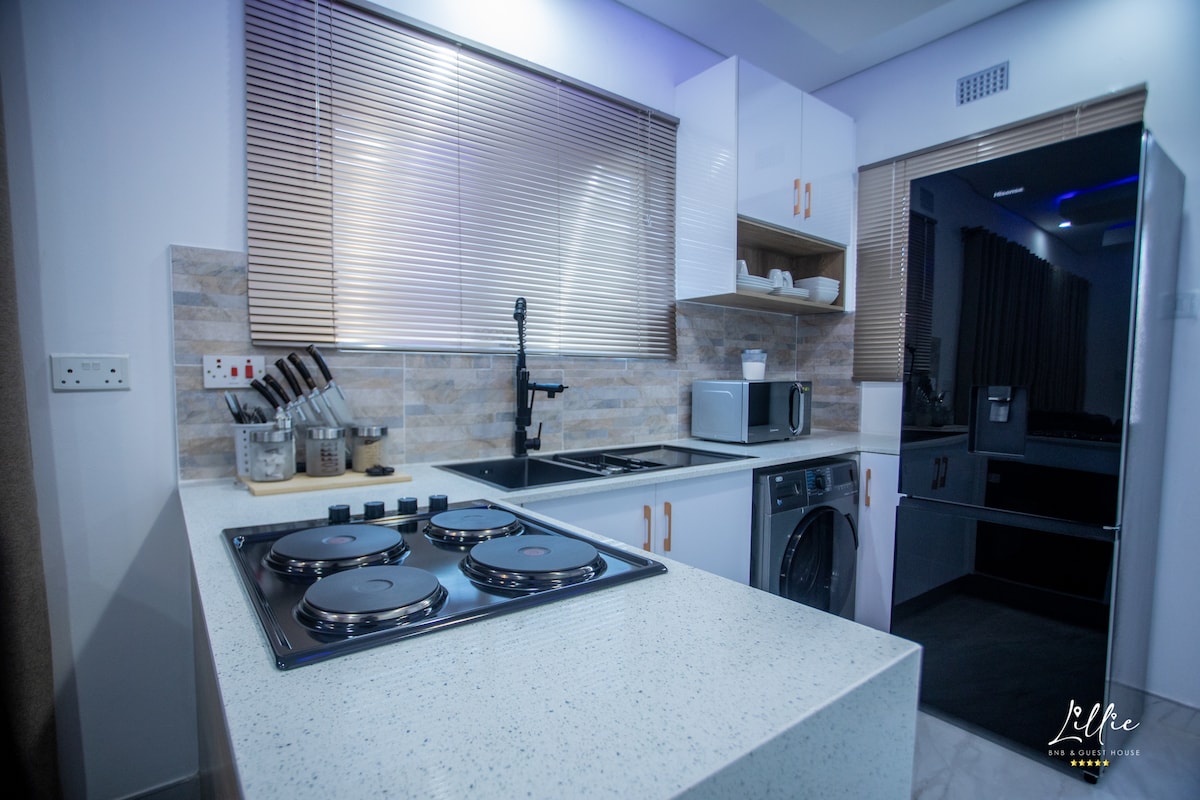 Ласкаво просимо до затишного котеджу Гого! Котедж розташований у тихому районі недалеко від центрального делового району і пропонує ідеальний баланс комфорту, зручності та спокою. Ідеально підходить для бізнес-мандрівників, пар або одиночних мандрівників, які шукають затишне, але функціональне помешкання з повністю функціональною кухнею, Wi-Fi та DSTV для розваг та підключення. Резервне живлення через сонячну енергію та плідну свердловину для безперебійної електроенергії та надійного водопостачання, що забезпечує ваш комфорт у будь-який час. Парковка на території