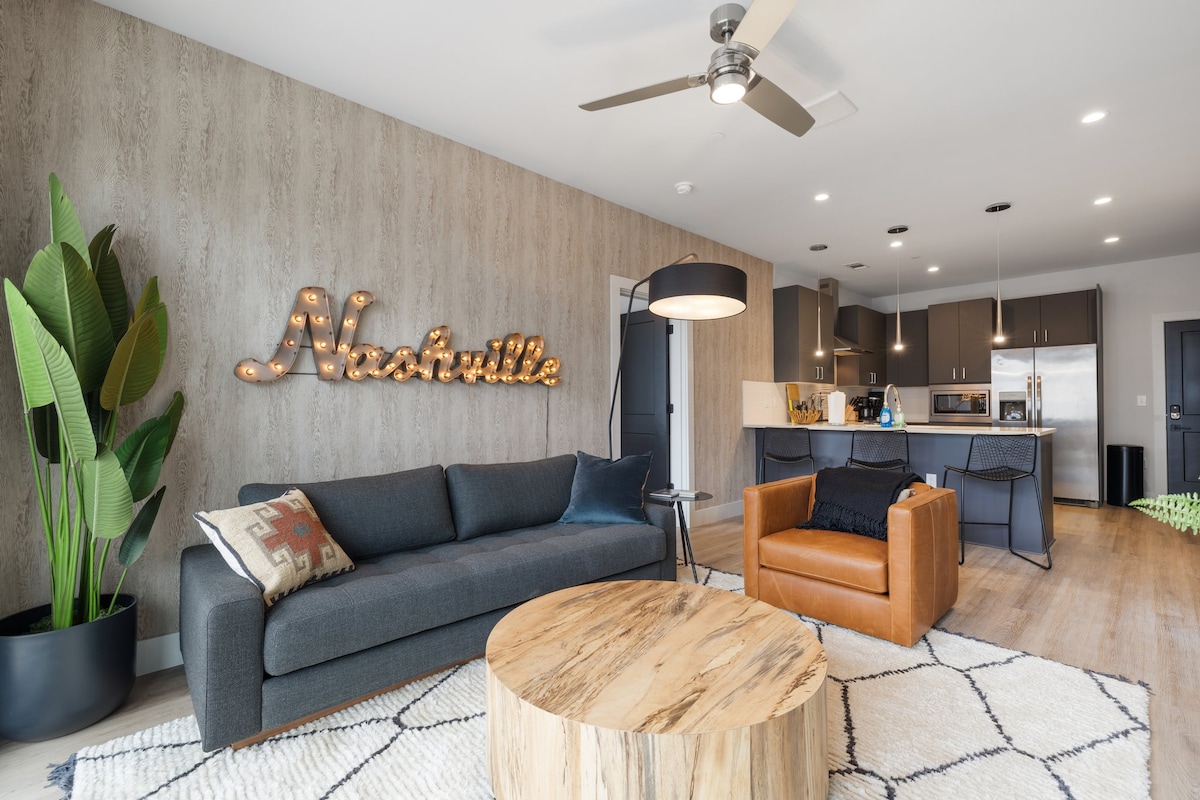 Experience luxury in this peaceful condo, just minutes from Vanderbilt and downtown. - Spacious interior with soaring ceilings - Private covered balcony for morning coffee - Secure parking for 2 cars - High-speed internet and Smart TVs - Newly built twin over twin bunk beds - Explore nearby attractions like the Country Music Hall of Fame and Museum - Less than 10 minutes to Broadway, 12 South, Music Row Need a concierge?