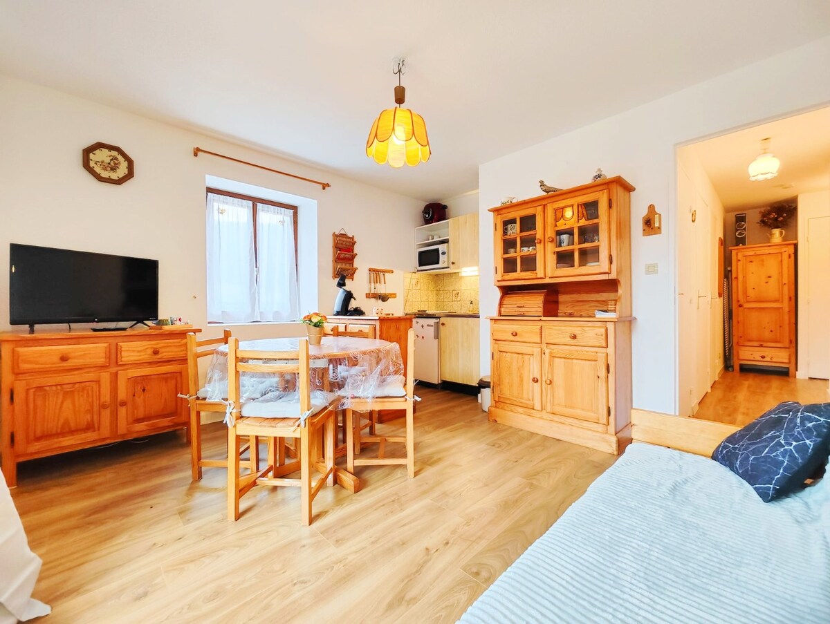 Дуже гарна квартира на першому поверсі з балконом, що складається з 2 кімнат, з вітальнею, гірським кутом та 1 спальнею + безкоштовна парковка в резиденції + підвал/приватна кімната для катання на лижах. Розташований в 300 м від центру села і магазинів, в 200 м від крісельного підйомника і в 2 км від поля для гольфу. Сімейний курорт з багатьма видами дозвілля, ідеально підходить для любителів зелених насаджень або зимових видів спорту. 30 хвилин від Сен-Клода або Дівонн-ле-Бена і 45 хвилин від Женеви.