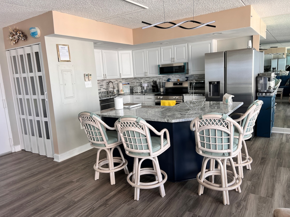 ALL THE COMFORTS OF HOME AT THE BEACH! BRAND NEW RENOVATED BATHROOMS! -ALL LINENS INCLUDED -Comfortable electric-reclining sofas -65-in smart Roku TV with soundbar. -Massage chair in master bedroom -Balcony & Dining Area w/ Ocean +Bay Views -In-unit W/D -Many conventional & USB Outlets -Arcade level features b-ball hoop, pool tables, ping-pong, shuffleboard, air-hockey -Outdoor tennis court -Large heated indoor pools -can swim full laps -Sauna and Gym -Board games in unit -Fast Wifi