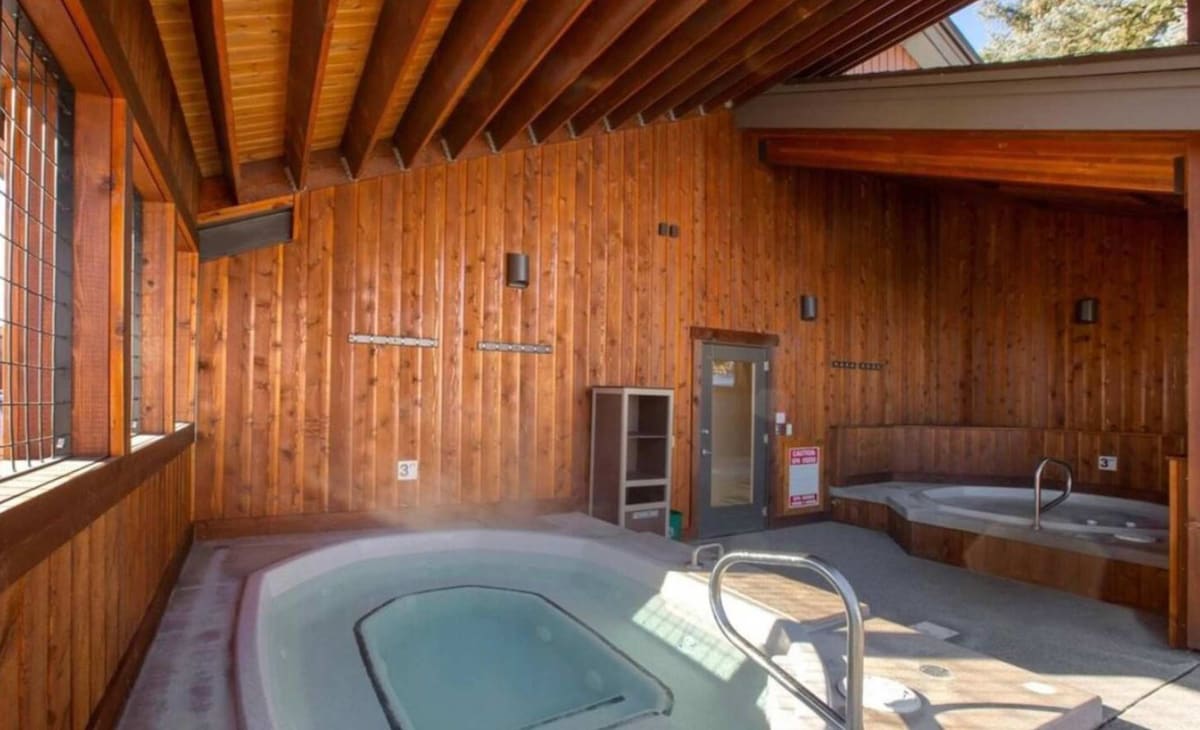 – 765 Sq Ft, 1st floor condo – Private patio w/ great view of the mountain – 2 major grocery/liquor stores w/in a 5 minute walk – 2 hot tubs steps from the front door, cleaned daily with heated changing room – Efficient gas fireplace – Free bus to the mountain and downtown — 5 min either way – Fully stocked kitchen with spices, blender, & full cooking equipment – Free coffee, tea & oatmeal provided – Soap, shampoo & conditioner provided -Minutes away from blue ribbon trout waters and core trail.