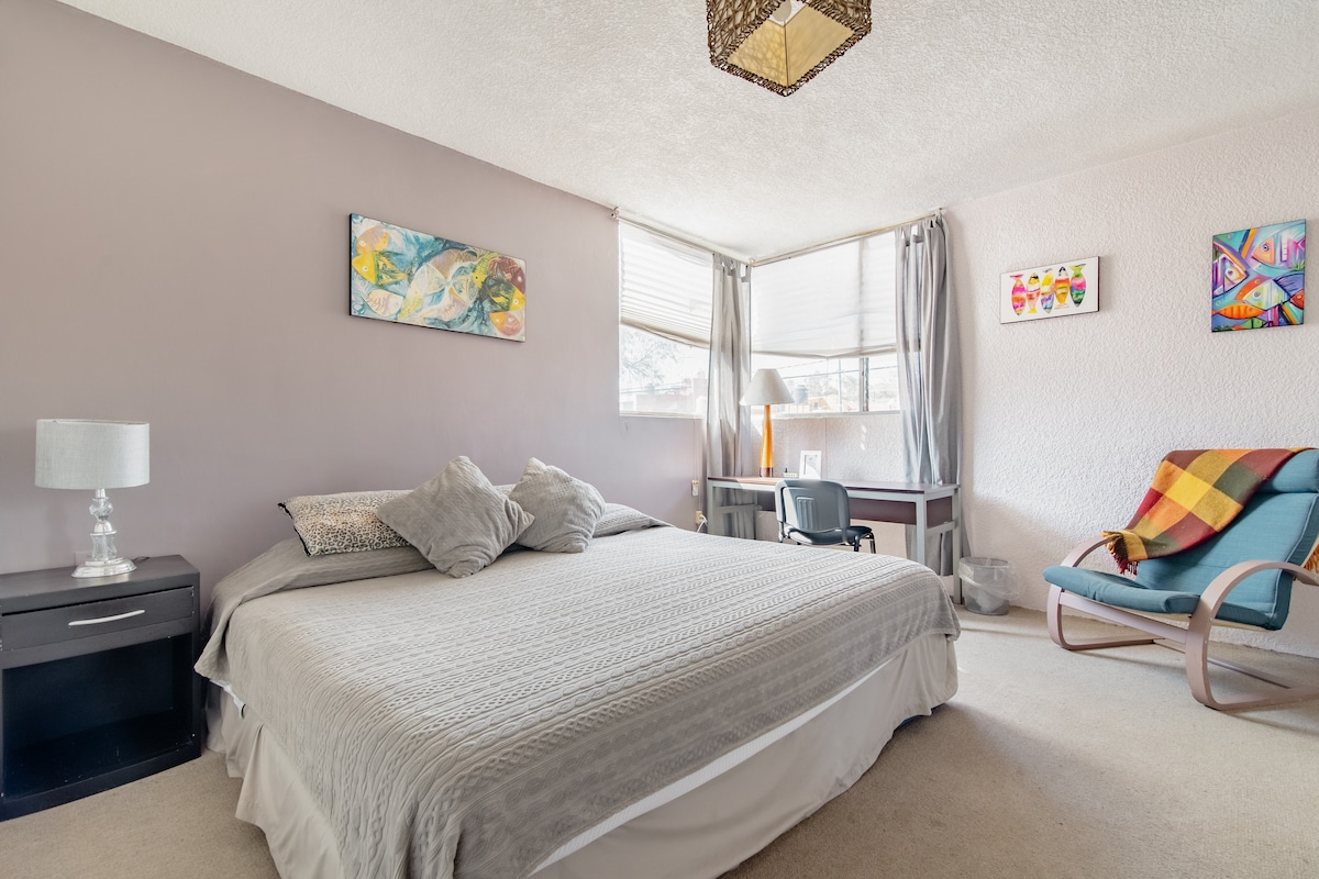 Спальня з ліжком розміру king size та окремою ванною кімнатою в Койоакані