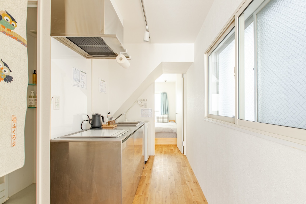 Він може вмістити до 4 осіб. Це квартира-студія, розташована на 2-9-му поверсі. У вашій кімнаті є кухня та обідній стіл. Насолоджуйтеся їжею так само комфортно, як удома. У нас також є безкоштовний Wi-Fi і пральна машина в номері, тому це рекомендується для довготермінового перебування. У спільному вестибюлі на 1-му поверсі є безкоштовна кава. Розслабтеся і насолоджуйтеся диваном. Доступ до помешкання Помешкання знаходиться в 2 хвилинах ходьби від найближчої станції Кіобаші. JR Osaka Loop Line Kyobashi Station Метро Keihan Line Osaka Ви також можете дістатися до Кіото та Кобе без зміни поїздів, тому це гарне місце для огляду визначних місць у регіоні Кансай. Стоянка на цьому об 'єкті відсутня. Коли ви приїдете на автомобілі, скористайтеся платною парковкою поблизу. * Якщо вам не виповнилося 18 років, повідомте нас про це заздалегідь під час бронювання.
