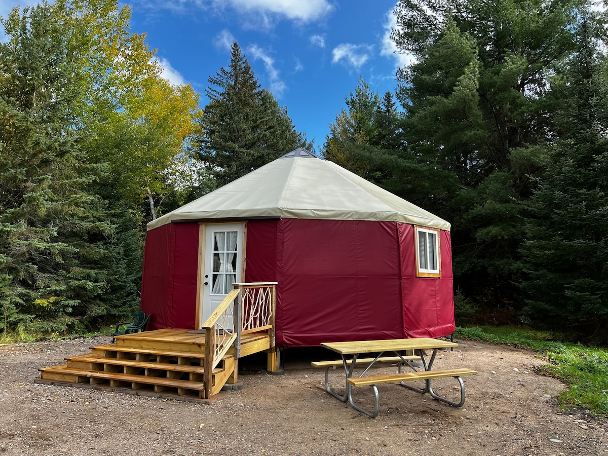 Гостюйте в єдиній розкішній дерев 'яній юрті на північному узбережжі Міннесоти. Наша юрта розташована на скелястому березі озера Верхнього. Прогуляйтеся стежками до скелі. Сама юрта відкрита й заспокійлива. Добре обладнана кухня та скляний душ покращують ваше перебування. Ліжка включають повноцінне ліжко в спальні та два односпальні ліжка в лофті. Лише для дорослих. Юрта для розміщення знаходиться біля доглядальної юрти, де є невелика студія для безкоштовної приватної йоги, яку можна організувати заздалегідь.