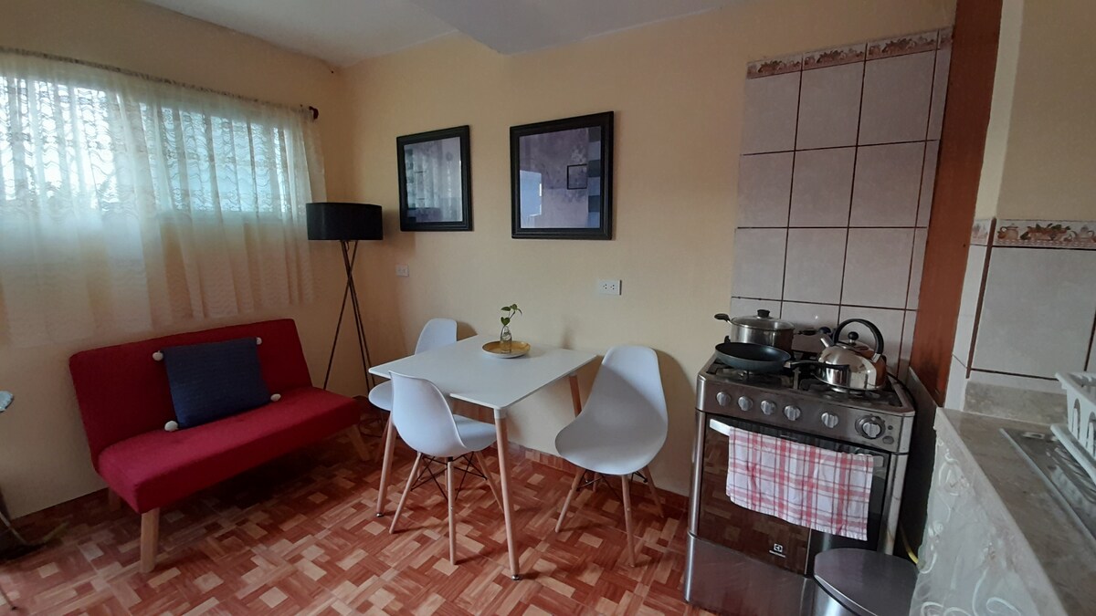 Простір для комфортного відпочинку з усіма зручностями, щоб ви почувалися як удома. Якщо ви проїжджаєте через Ліму і чекаєте наступного рейсу? Це ідеальне місце! Дуже близько до міжнародного аеропорту Хорхе Чавес. У квартирі є: 1 двоярусне ліжко Queen Size з 1 1/2-місцевим ліжком Холодильник з гарячою водою з морозильною камерою, пральною машиною, духовкою, плитою, мікрохвильовою піччю, кухнею, посудом, столовими приборами. Супер Інтернет Wi-Fi MASWINNER потужністю 500 Мбіт/с. Спальня з кондиціонером.