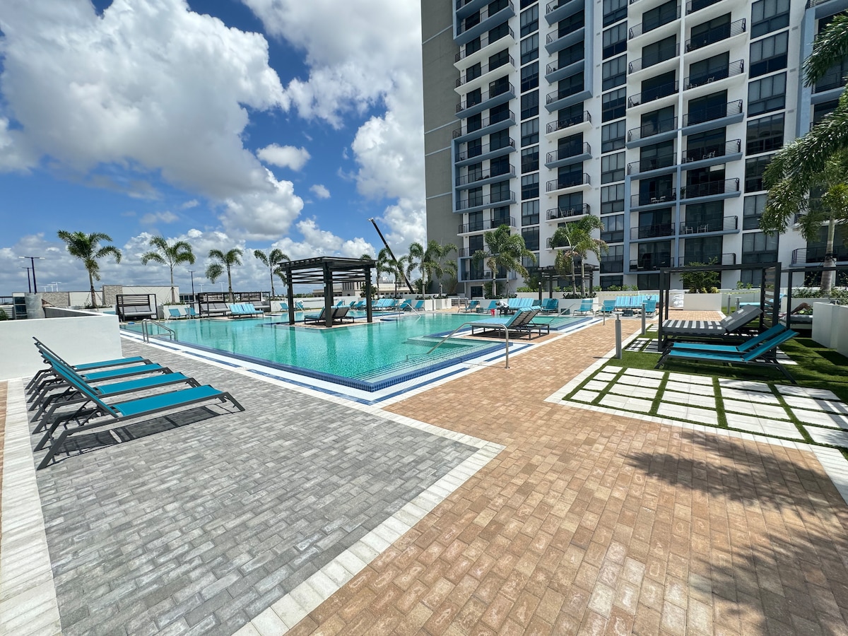 Нове кондо, всередині сучасної вежі готелю, насолоджуйтеся зручностями, схожими на готель: басейн, джакузі, (14-й поверх), тренажерний зал, ресторан, кав 'ярня Grab & Go, бар, коворкінг, парковка за окрему плату. Квартира з однією спальнею, ванна кімната, повністю обладнана кухня, вітальня та їдальня, телевізор, Wi-Fi, пральна машина, сушарка. Близька відстань до жвавих районів Маямі: Brickell, Coconut Grove, Design District, Wynwood, Miami/South Beach. Прекрасне розташування, торгівельні центри: Bayside, Brickell Centre, місця проведення: Bayfront, FTX, Arsht Center, музеї: Frost