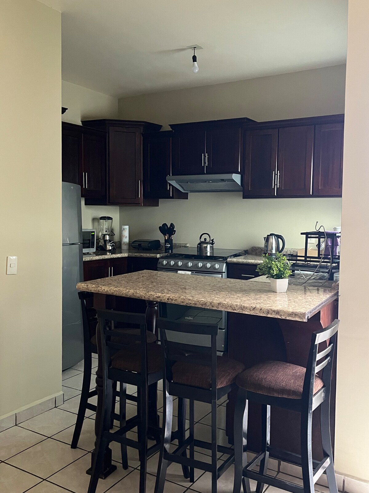 Apt Magnolia (B)—Phenomenal view with a blend of luxury and comfort 5-min drive from Tepatitlan's vibrant downtown. With room for 6, ample space features 2 comfortable beds, a cozy sofa-bed, and high-end amenities like Fiber-Optic Wi-Fi, Smart TVs, kitchen and an in-unit washer and dryer. Nestled in a tranquil, secure neighborhood, you're minutes from iconic attractions like the Centenario market, stores and restaurants. Ideal for families and couples seeking romance and relaxation. Book now!