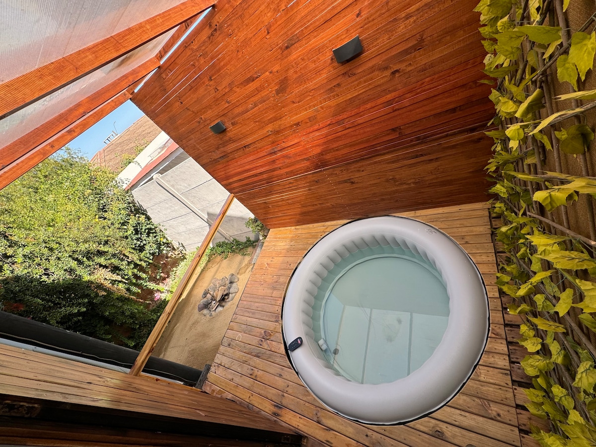 Live nature... Pool during the day and fire pit at night...Relax and connect with marvelous sunsets and a dreamy starry sky. Enjoy the peace ; only 10 minutes by car from the beaches Algarrobo Norte, Mirasol ( Pirat cave), Tunquén. Fully equipped rustic loft to enjoy beautiful moments as a couple +2. Terrace between trees and birds songs. Fire pit for cold and starry nights. Pet friendly. We are waiting for you!!