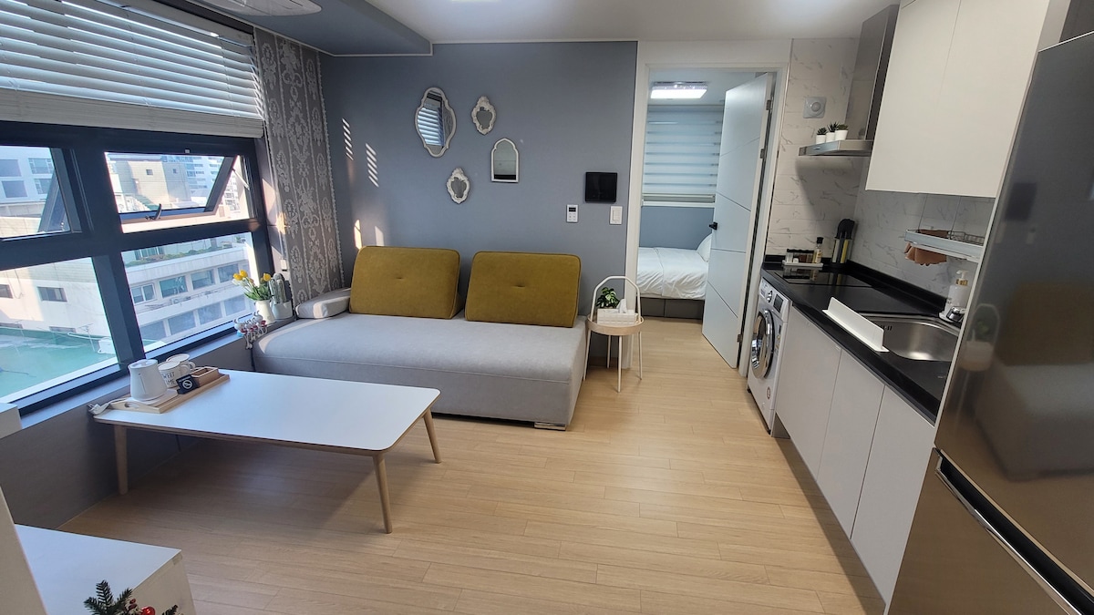 Законне розміщення, дозволене відділенням, завершене в червні♦️ 2020 року Це. ♦️ Це на верхньому поверсі (13-й поверх), і від помешкання ви можете трохи побачити море з відкритою терасою, і якщо ви хочете побачити ширше море, ви можете насолоджуватися прекрасним видом на океан на мосту Кванган з даху, а якщо ви вийдете до моря (1 хвилина), ви можете побачити чудовий міст Кванган. Курити можна на♦️ відкритій терасі. ♦️Існує ігровий автомат Retro-Orakroom. Якщо ви подорожуєте зі своїм♦️ коханим, друзями, сім 'єю та домашніми тваринами, це найкраще житло за вартістю!!!