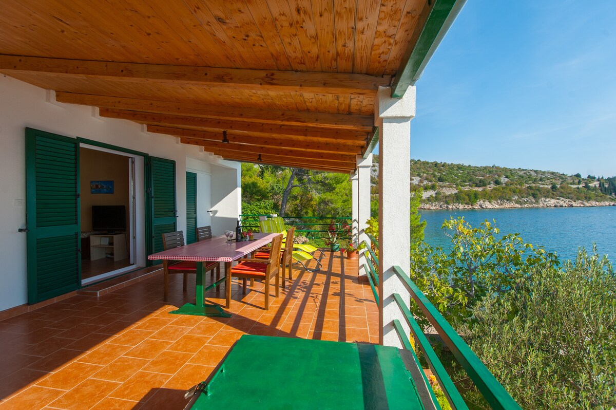 Наша квартира знаходиться трохи вище нашої піщаного пляжу. Квартира площею 95 кв. м на 4-8 осіб, три спальні, ванна кімната,кухня, вітальня, велика тераса з видом на море. Огороджене паркувальне місце , гриль для гостей у саду. Над пляжем дві великі тераси в природному сараї. Мішковичі - невелике і тихе рибальське селище у великій затоці Дінджішка. Завдяки нашій набережній біля моря за кілька хвилин ви можете дістатися до центру селища, де знаходиться пляжний бар із фаст-фудом та наш футбольний та дитячий ігровий майданчик. Ідеально підходить для дітей.