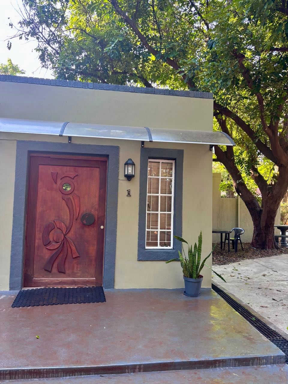 A cosy self-catering garden studio offering a place to rest in Komatipoort. The unit features air-cnditioning, a kitchenette with outdoor corner where guests can enjoy morning coffee while listening to the birds. Equipped with a combartable queen-bed, microwave, kettle, toaster, one plate gas stove, confection oven, and fridge. Private bathroom with shower and toilet. Perfect for couples or overnight travelers visiting nearby Kruger National Park