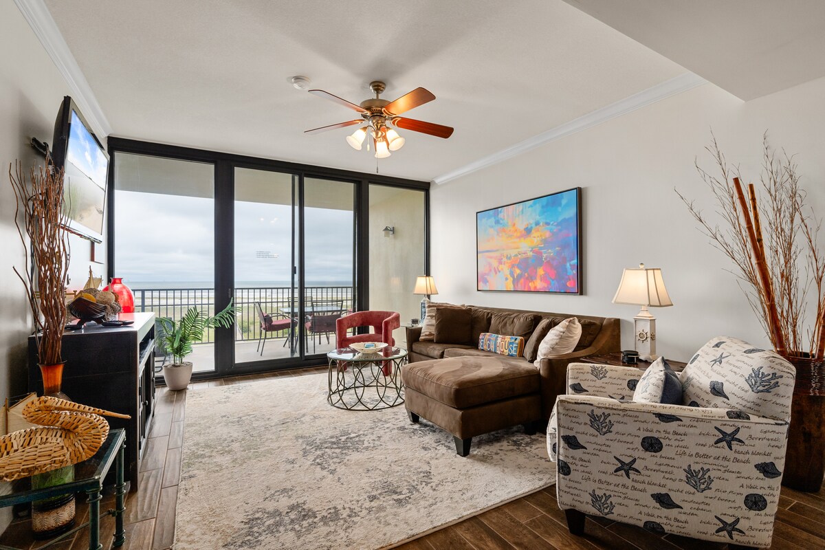 Пошарпаний шик і сучасний, прибережний і затишний. Розкішний кондомініум на 6-му поверсі в вежі 3. ПЛЯЖ, ДИВОВИЖНИЙ КРАЄВИД, ВЕЛИКОГАБАРИТНИЙ БАЛКОН! * Кондомініум із 2 спальнями/2 ванними кімнатами ~ розрахований на 8 місць * Ліжка з пінопласту з пам 'яттю в головному помешканні/2-му помешканні. Диван-квін *Приватний пляж. *Повністю укомплектована кухня шеф-кухаря *Смарт-телевізори. *Стілець для годування, упаковка/ігри, ігри тощо. * Доступ до пляжної шафи/обладнання