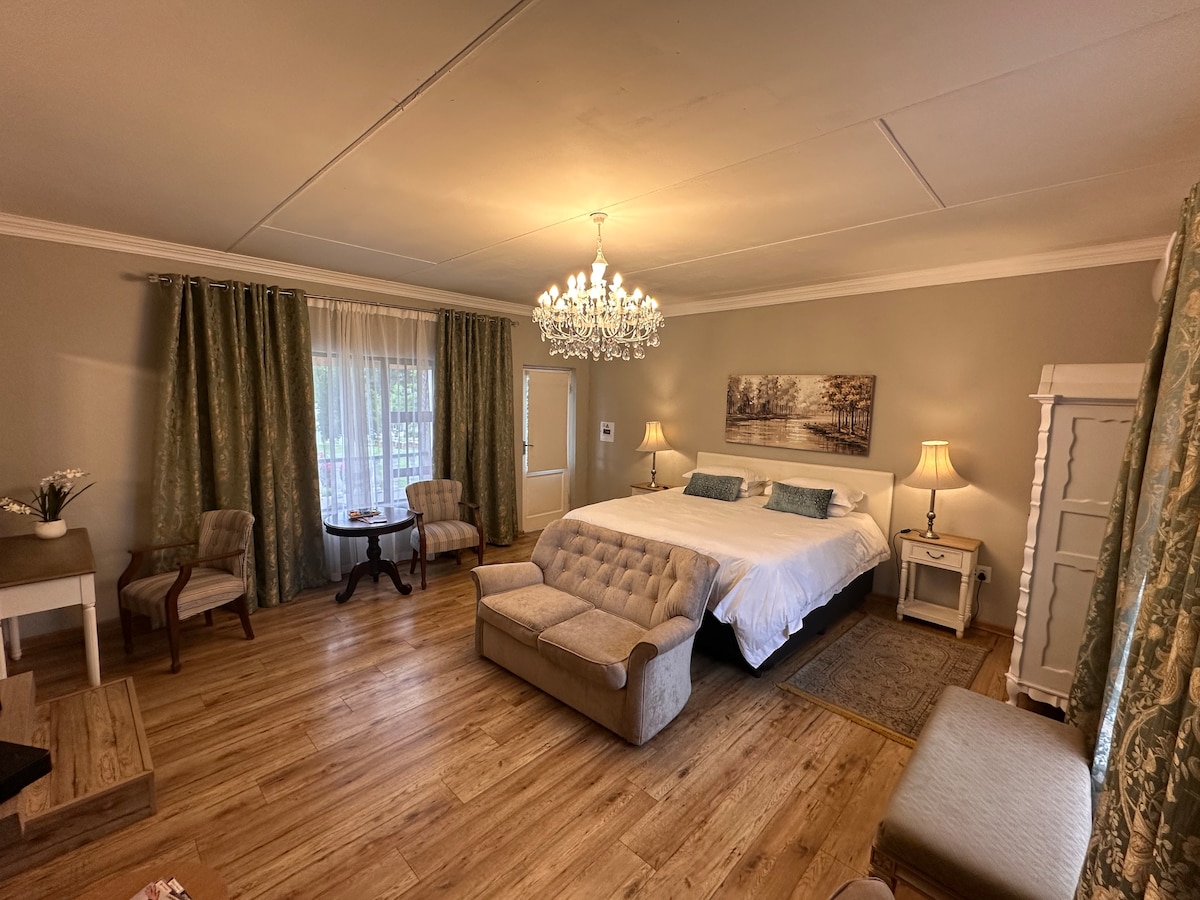 This light-filled apartment is fully private with its own entrance, separate from the main house—perfect for peace and quiet. Inside, you’ll find a cozy bedroom with an en-suite bathroom, plus a spacious living area with a dining space and a kitchenette for your convenience. The apartment is powered by solar backup electricity and a solar geyser, so you can enjoy a comfortable stay without the hassle of load shedding. We share our home with two dogs and a cat—friendly family pets who love people
