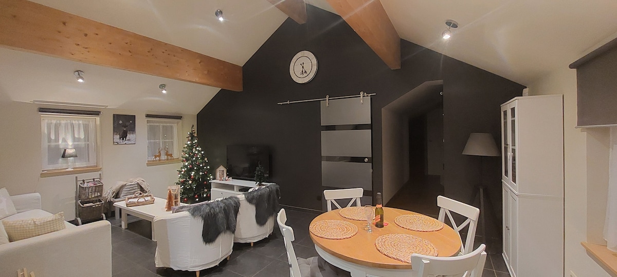 Situé à Fontenoille, entre Ardenne et Gaume, ce gîte de charme est l'endroit idéal pour une escapade en couple, en famille ou entre amis. L'atelier offre 2 chambres, une grande salle de bain, un vaste séjour lumineux avec pierres apparentes, poêle à bois et grande baie vitrée. ancienne grange rénovée en cocon chaleureux, il accueille jusqu'à 4 personnes (+ divan). Dès l'entrée, vous apprécierez son ambiance unique.