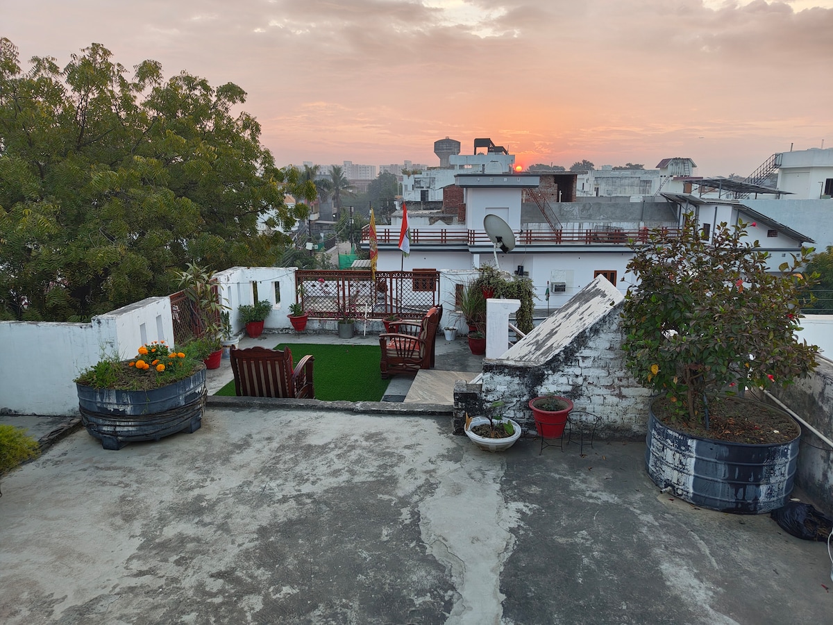 Відчуйте комфорт і зручність у центрі Лакнау! Ласкаво просимо до нашої затишної кімнати-студії, улюбленої гостьової кімнати , розташованої неподалік від метро Університету Лакнау, яка пропонує ідеальне поєднання спокою, комфорту, приватності та доступності для людей з особливими потребами. Місцевий ідентифікаційний номер також ✨ Навіщо гостювати тут? ✔ Підходить для роботи з дому – спокійна атмосфера з доступом до саду ✔ Добре обладнана кухня – приготуйте швидкий сніданок або ранковий чай ✔ Сучасні зручності – кондиціонер ,телевізор і холодильник для вашого комфорту Найкраще розташування ✔ - легкий доступ до метро, щоб ознайомитися з містом.