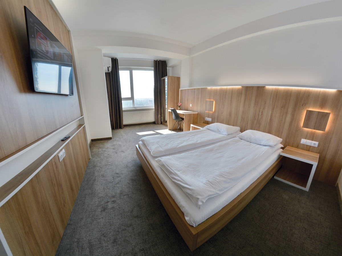 An accommodation ideal for those seeking something special and a great location for exploring the city.This amazing studio flat is located in the historical center of Chisinau, within a walking distance to restaurants,shopping centers and to the main tourist attractions.The apartment has been well-designed,creating a comfortable and stylish environment for your stay.Located on the 15-th floor,it has a terrace that affords a wonderful panoramic view of the city without any interfering buildings.