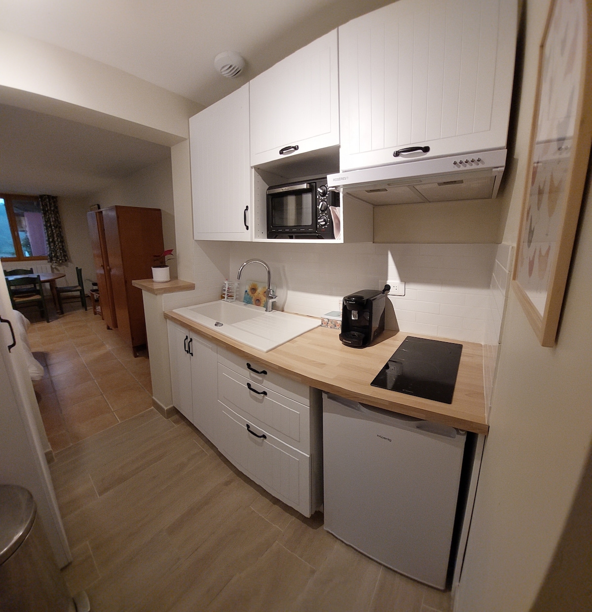 Logement indépendant constitué d'un studio (avec 1 lit double et 1 canapé lit d'1 pers. de 90cm) et d'une chambre avec 2 lits simples accolé à la longère où nous vivons. Vous serez au calme absolu à la campagne dans une propriété de plusieurs hectares avec des chênes centenaires, un potager en permaculture et une vue sur les Pyrénées. Vous profiterez d'une terrasse et du pool-house de la piscine (ouverte de juin à mi septembre) - partagée avec un autre gite - pour vous détendre.