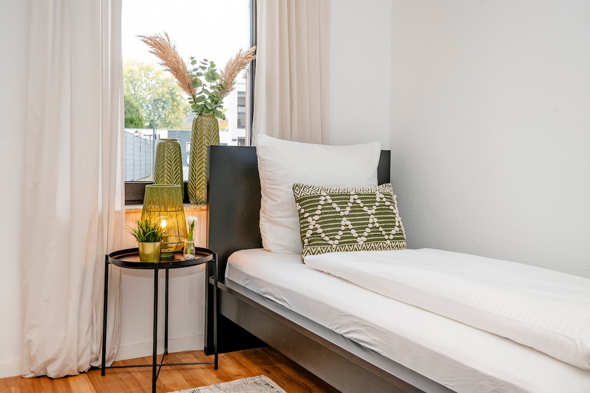 Ласкаво просимо до вашого затишного помешкання посеред міста. ✔️ Тихе місце, незважаючи на розташування в центрі міста – ідеально підходить для відпочинку ✔️ Двоспальне ліжко + диван-ліжко ✔️ Повністю обладнана кухня ✔️ Сучасна ванна кімната з денним освітленням ✔️ Телевізор Smart TV і Wi-Fi 500 Мбіт ✔️ Безкоштовна стоянка на вулиці ✔️ 8 хвилин пішки до головного вокзалу ✔️ Центральне розташування з кафе та магазинами поблизу Можливе ✔️ самостійне прибуття ✔️ Ресторани та магазини в безпосередній близькості. З нетерпінням чекаємо на ваш візит до Мьонхенгладбаха!