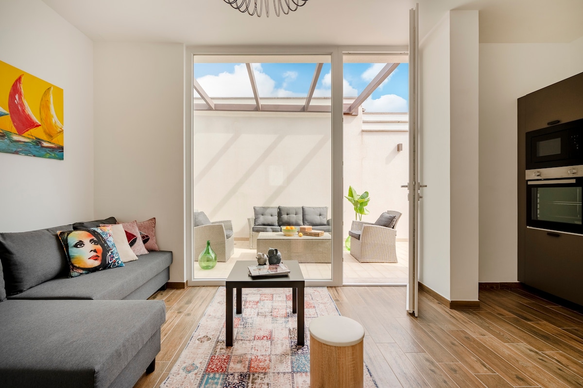 Casa Creta - це дворівневий будинок, розташований в історичному центрі Монополі. Він розвивається на другому та останньому поверсі невеликого палацу XVII століття: на головному поверсі розташована простора вітальня з великим обіднім столом, двома вбудованими диванами та широкою повністю обладнаною кухнею, двома великими двоспальними спальнями та двома ванними кімнатами з душем. На верхньому поверсі велика тераса з видом на собор, море та дахи старого міста, а також друга кухня та внутрішній дворик з обіднім столом.